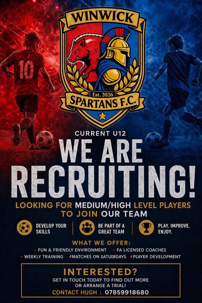 U12 Wolves seeking new players (U13’s in 2026/27) April 22, 2026April 22, 2026WinwickAthletic Share this: Share on X (Opens in new window) X Share on Facebook (Opens in new window) Facebook Like Loading... Related